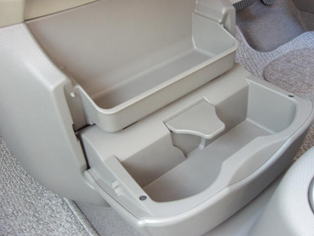小物入れとカップホルダー。これはパタッと閉めて、すっきりすることが出来ます。けど、250mlの缶だと倒れる危険性があります。 |
