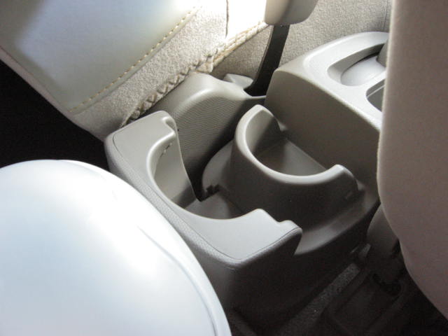 リヤ用のカップホルダーちゃんと2本置けますしフロントと同じでパタッと閉めておくことが出来ます。こういう演出がニクいよ!白くて丸いのはゴミ箱です。必需品! |