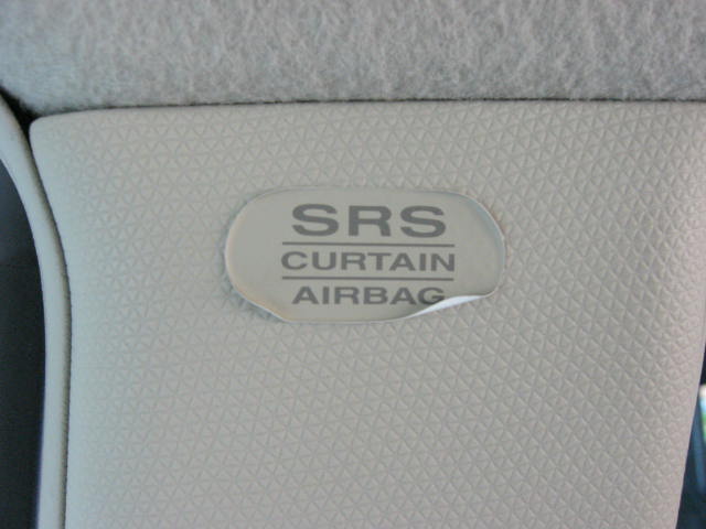 なぜか納車時からはがれ掛かっているシール。14eには標準でサイドとカーテンエアバッグが付いています。もうはがしました。 |