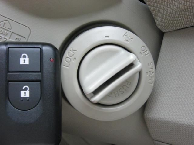 新型マーチのウリ「インテリジェントキー」です。左の黒いキーを持っているだけでエンジンがかけられる。鍵が開けられる。「だから何?」と思わない!凄く便利なんです。ただ、キーがデカい! |