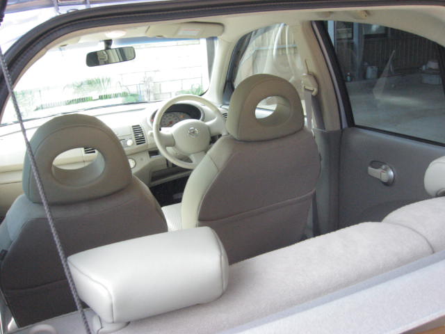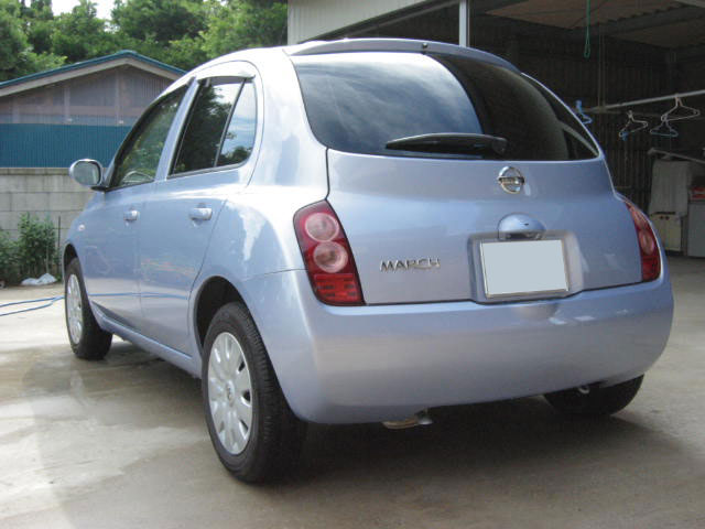 リヤからのマーチ。何とも奇妙な形ですね。車体の上半分が絞り込まれています。ちなみに、プライバシーガラスの設定はありません。フィルムを張りましょう。 |