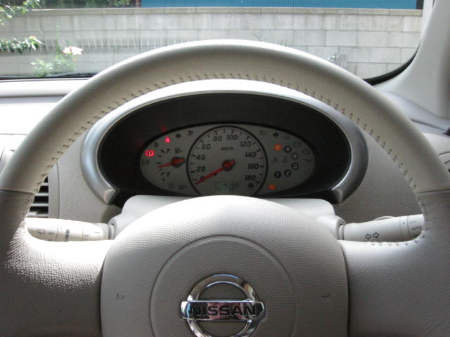 運転席です。明るくて居心地の良い運転席ですよ。シート高の調整はかなりイマイチ。(スカイラインと同じ)シートの大きさも小さいけど、滑らない材質です。ホールド性は皆無。 |