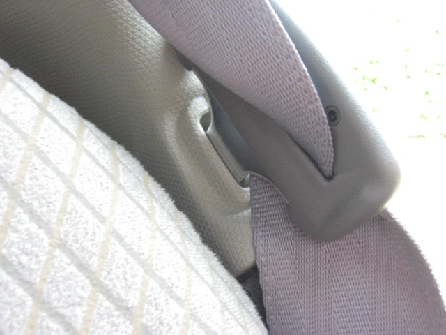 リヤシートのシートベルト収納?普通、リヤ用のシートベルトって邪魔ですけど、マーチは使わない時には画像のように邪魔にならないようにしておくことが出来ます。これまたニクい演出。 |