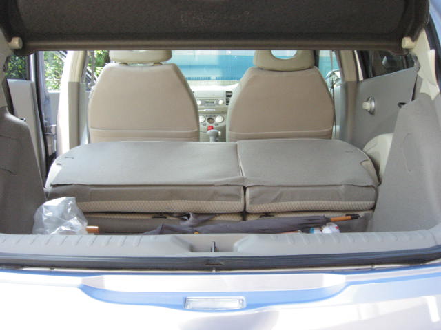 パタッとリヤシートを倒したところ。おもいっきり段差が出来いますけど倒れないよりはまし。確実にスカイラインよりは物が積み込めますよ。 |