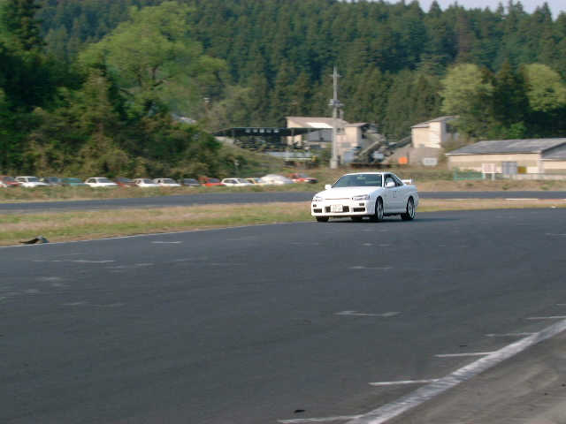 ・前日は、朝起きに備えて10時頃に頑張って寝ました。すやすや寝ていて、3時頃に起床。支度をして4時頃に出発しました。穴川インターから高速に乗り、巡航速度120kmですいすいと空いている高速を走る走る。ひたすら走る。首都高に乗る。また、ひたすら走る。走る。走る。東北自動車道に乗ってからもひたすら走る走る。その間、ずーっと120kmをキープしていました。日光サーキットには6時頃には到着予定でした、んが、いきなり渋滞になりました。渋滞にはまっている間、なんだか知らないけど狐か犬の死骸があったんですよ。肉片が飛び散っていて・・・、酷い状態でした。そのまま渋滞にはまっている事1時間。渋滞の原因も解らないままいつの間にやら渋滞が解消していたので順調に走っていると、トイレに行きたくなったのでパーキングによっていきました。その後、順調に走っていき、日光サーキットの手前で給油してから日光サーキットへ・・・。渋滞のおかげで既に時間は7時30分ちょい前。到着したらいたがきさんとGSRさんがすでに到着していました。<当たり前か・・・。(