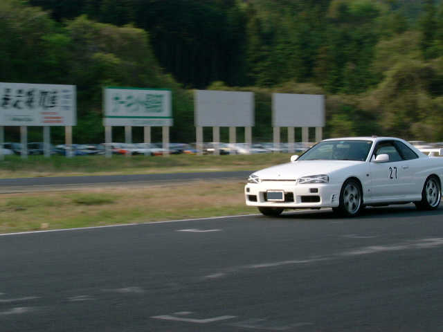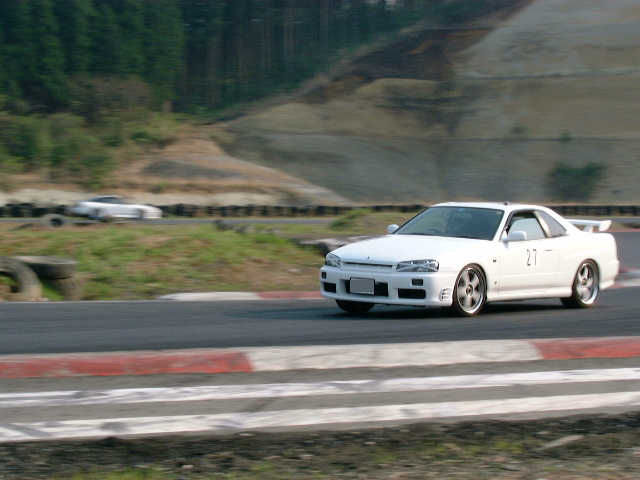 第5ヒートの後、あ〜る34KOさんの隣に乗せてもらうことになり、喜んで乗せて頂きました。まず、車自体からして違うという事に気付きました。足回りが私のなんかよりもぴたっとしてるんですよ。それで、ロールもあまりないんです。やっぱりスタビライザーの効果が効いているのかもしれませんね。あと、やっぱりパワーも全然違い、カルチャーショックです!!アクセルを踏むとすぐに加速するのです。マイスカイラインはあ〜る34KOさんのスカイラインと比べるとノロノロしているっていう感じです。また、走りはさすが!といいたくなるくらい凄かったです。なんといってもバックストレートからの減速が違うんですよ。素晴らしかったです。今度はあの走りを目標に・・・・・・。