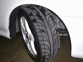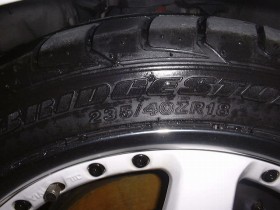 RAYS製のNISMO LM GT3です。NISMOのカタログとかに載っているので知っている人は多いですよね?本当はTE37などの軽量ホイールが欲しかったのですが、Yahooオークションで良い出品が無かった時に、以前から格好良いと思っていたNISMO GT3が出品されていたために購入してしまいました。タイヤは「DUNLOP FORMULA FM901」が装着されています。18インチの為、結構格好良いと思いますが、如何せん中古ですので、ホイールの内側にブレーキダストなどが付いていて個人の力ではなかなか落ちない汚れが付いていましたが、ホイールクリーナーや最後の手段であるコンパウンドなどを使用し、かなり汚れは落ちました。また、右のリアにちょっと大きい傷(本当にちょっとですが)があり、フロントの左側のホイールは特に汚れが酷く、汚れを落とすのに大変苦労しました。しかし、ホイールの内側さえ見なければなかなか綺麗だと思いますし、新品を購入しても1年くらいすれば同じくらいの傷や取れない汚れは付くと思いますので、あまり気にしない事にしました。ホイール自体が多少は軽量なのかもしれませんが、ノーマルホイール&タイヤと比べると非常に重いようです。重いので取り外しなどが非常に大変ですし、マルチホールなので取り付けが面倒です。あと、ナットを取り付ける穴が白に塗装されている為、擦った汚れや塗装のはがれが凄いです。このホイールとタイヤの組み合わせでは残念ながらツライチセッティングとはなりません。リアの方はキャンバーにもよりますけど、5mmくらいのスペーサーをかましても大丈夫だと思います。フロントはスペーサーをかます余裕はあるかもしれませんが、インナーフェンダーとの干渉ありそうです。 | |