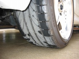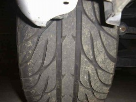 デジタイヤです。(^^ゞ 画像は上がフロントで下がリアとなっています。『DUNLOP FORMULA FM901』は雑誌などの評価ではグリップ自体はRE711等と比較すると劣りますが、コントロール性が良いらしく、また、デジタルなタイヤなので静粛性も結構良いらしいです。コストパフォーマンスもかなり良いと思いますし、公道ではRE711等が高くて勿体無い(買えない)という事などを考えると、スポーツ走行(サーキット)と普通乗りと快適性を両立できるタイヤだと思います。ただ、ノーマルタイヤと比べたら『ゴォォォォ〜』という感じで静粛性は劣ります。ちなみに、アルミについてきただけなのであまり選択の余地はなかったのですが、満足できる物だったので良しとします。新品の購入でも結構良いタイヤではないでしょうか? | |