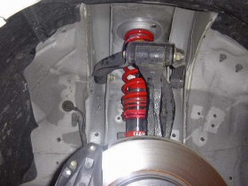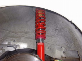 現在のセッティングは、フロント&リアともに、1段(最弱)で、車高は、フロント=−43mm・リア=−40mmの状態です。暫定的な状態で、これからもいろいろといじるかもしれません。ここだ!!というセッティングを発見したらアライメントを調整すると思います。詳しいインプレは、後日。 |